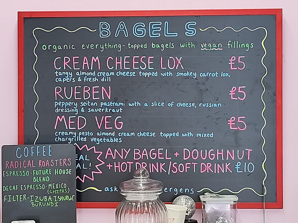 These are the best vegan doughnuts you'll have. Inventive flavours, really tasty. They also do savoury bagels and hot drinks.