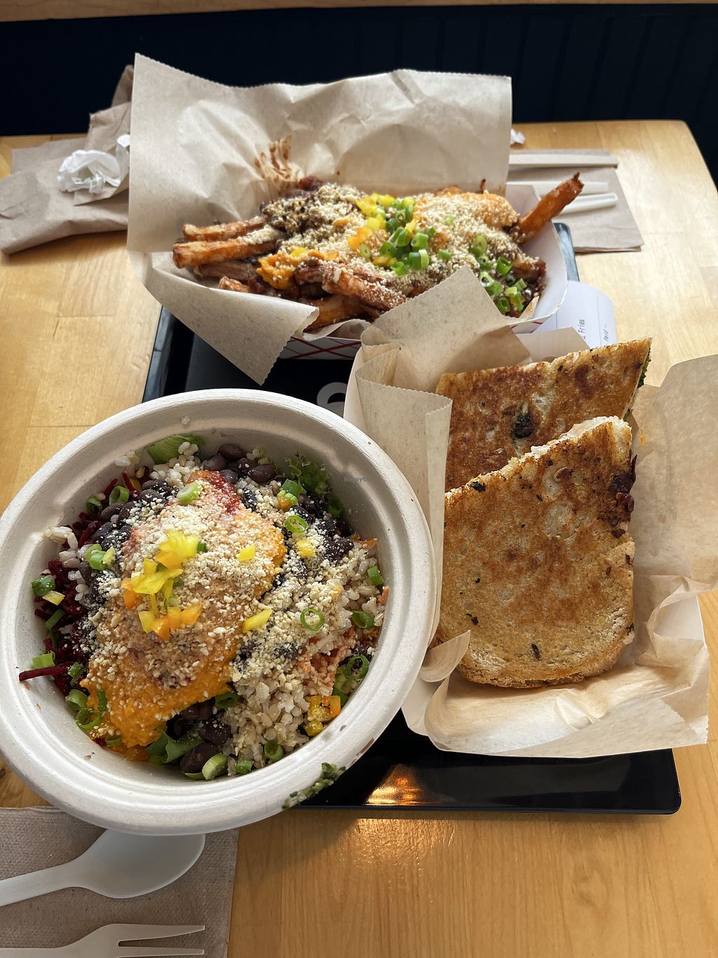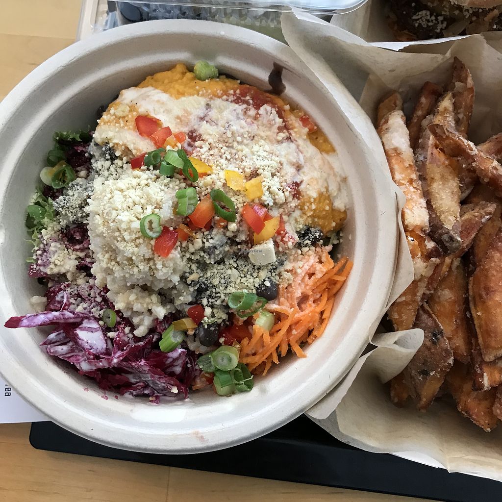 Bean Burger and sweet potato fries