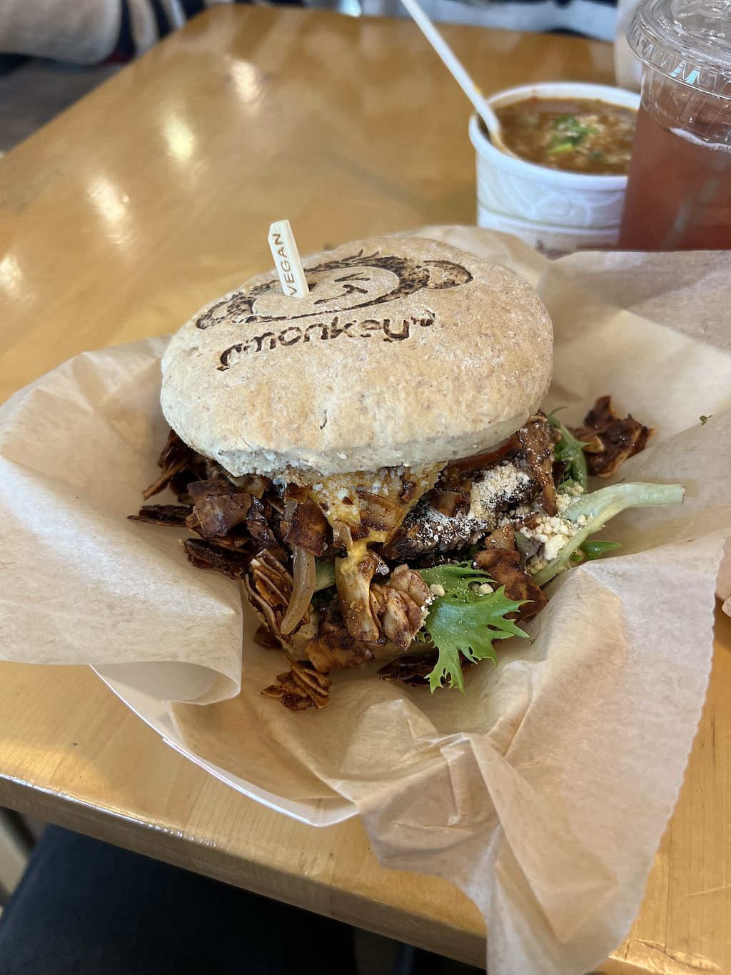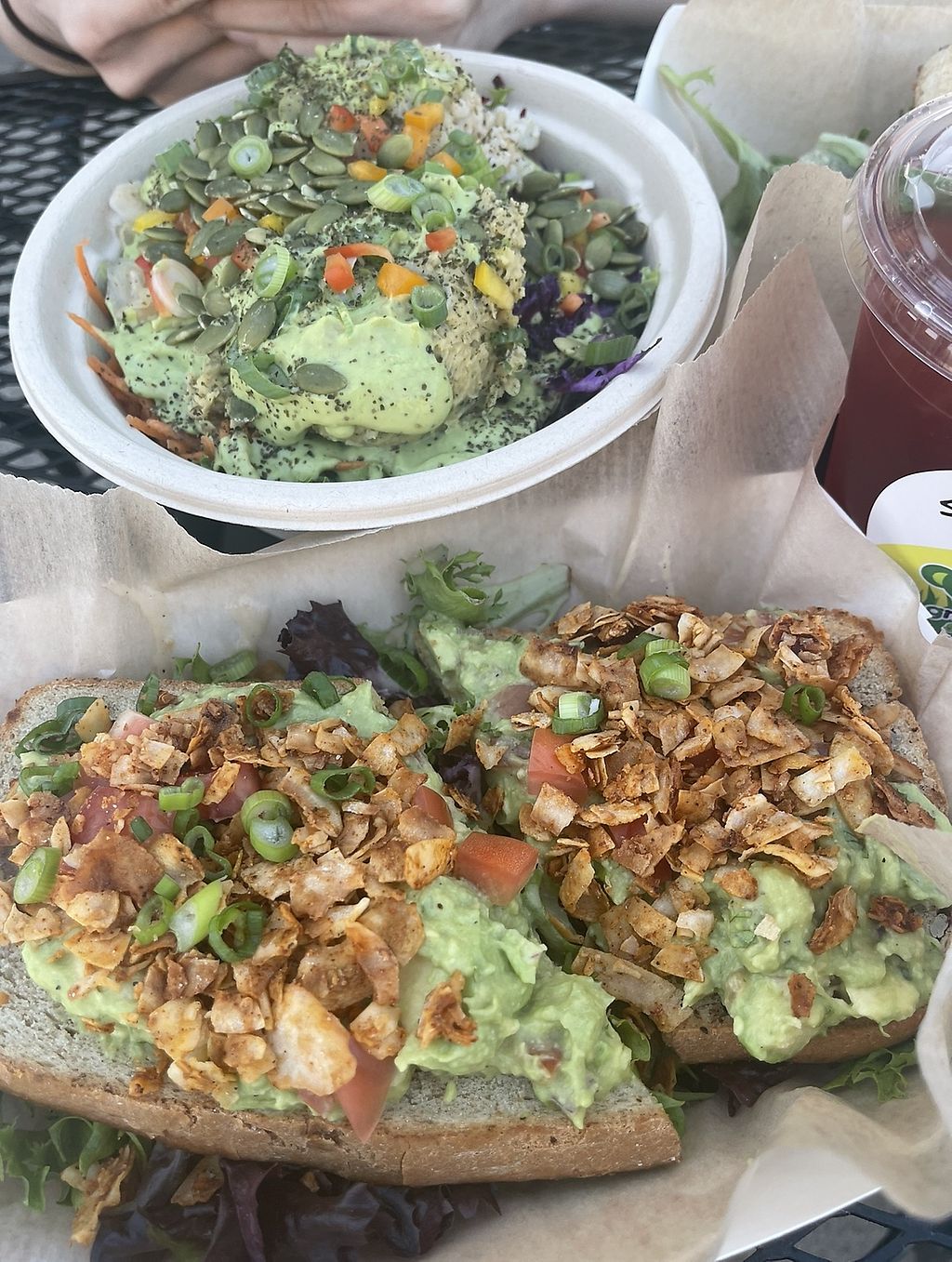 Tuna salad bowl, Caesar salad, creamy red pepper soup, sunshine tea, h…