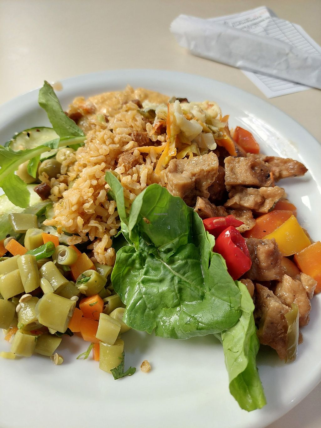 Buffet self service a quilo com muitas opções veganas, inclusive de do…