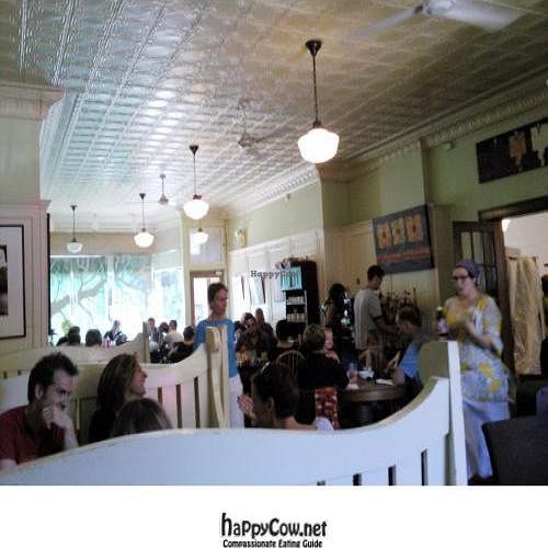 Self serve coffee and tea. Dairy-free, vegetarian brunch. Most dishes can be made vegan on request. Showcases artworks. Reported closed to HappyCow, Sep 2014.
