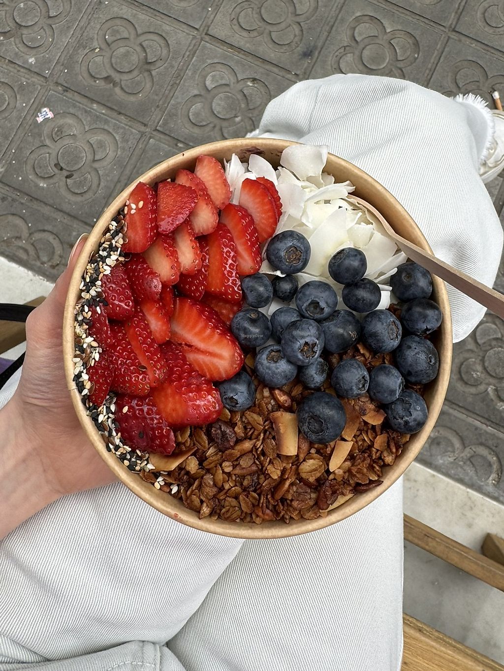 The title already says it: I very much enjoyed my açai bowl. :)💗 The options and the quality of the products is really good. Especially the granola was super tasty! Be aware that the only seating option are two small benches (one inside, one outside), but they do offer free water.