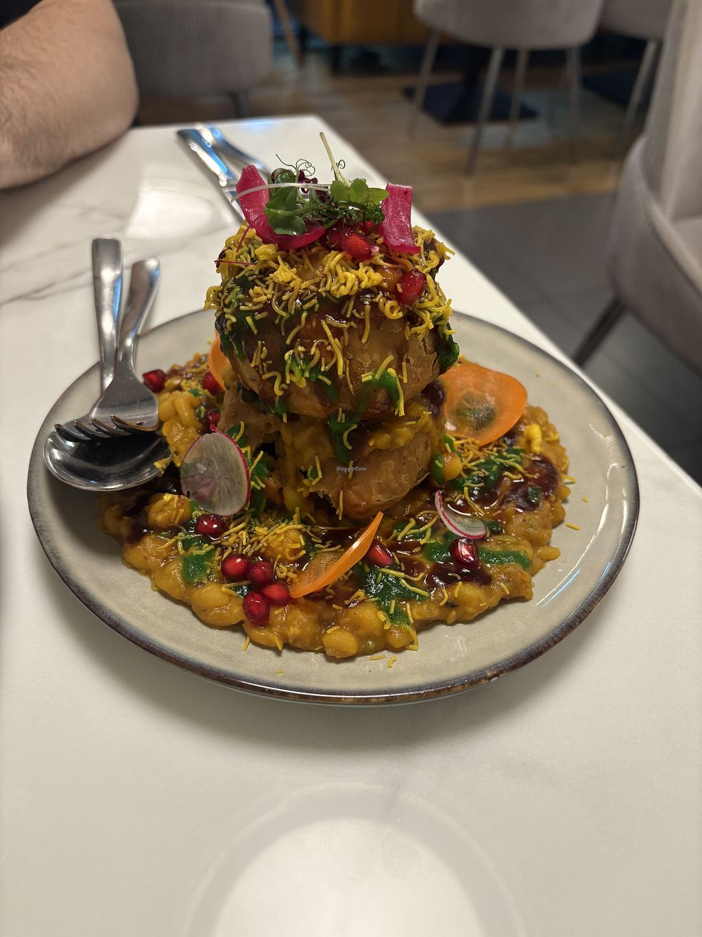 Vegetarian restaurant serving international and Asian dishes. Vegan items are labelled and include quinoa & kale salad, soya rogan josh, baby potato tehri, soups, bhel, moong dal, vada pav and more. Open Mon-Sun 11:30am-11:30pm.