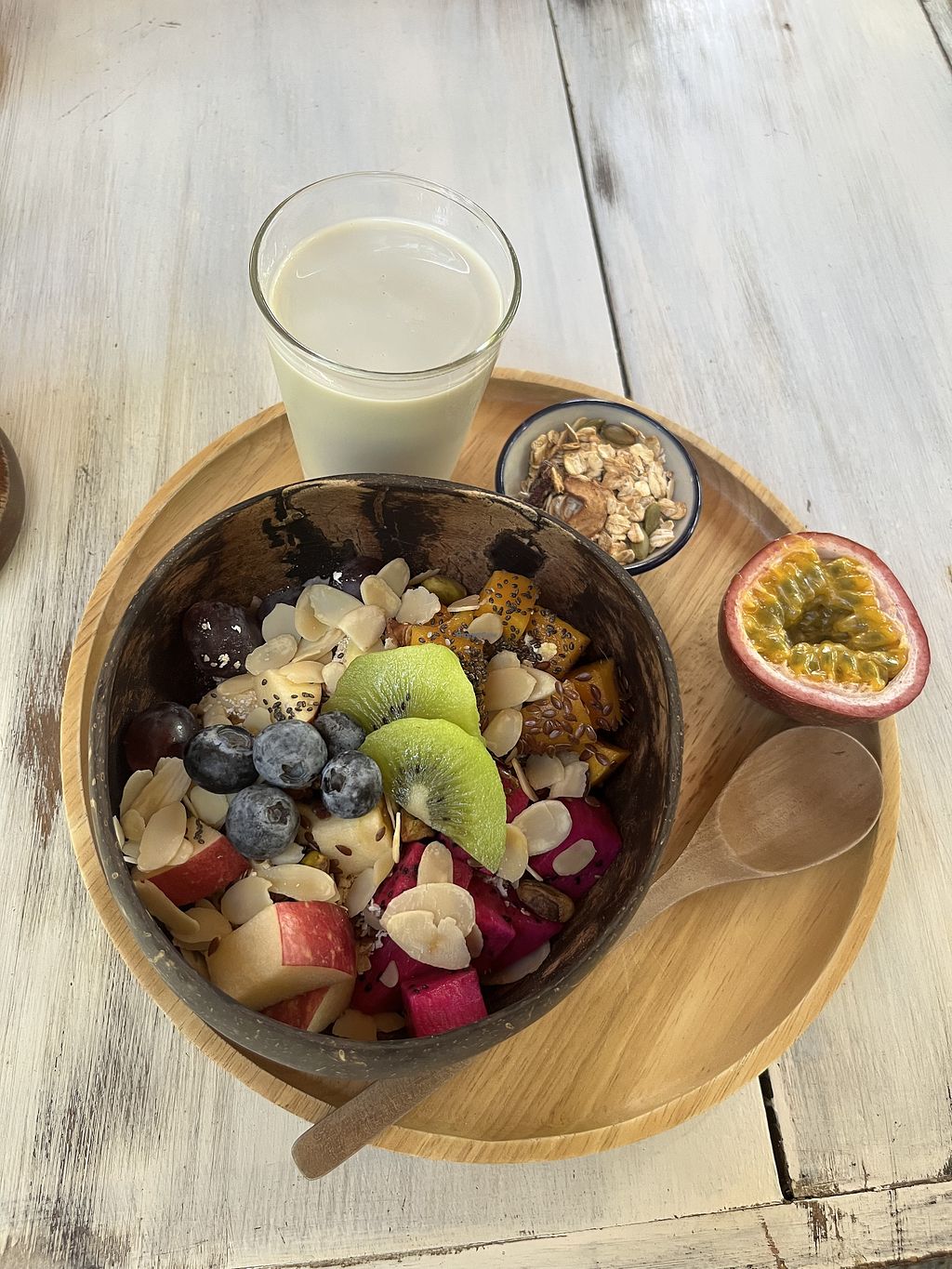 Galapagos bowl with soy milk