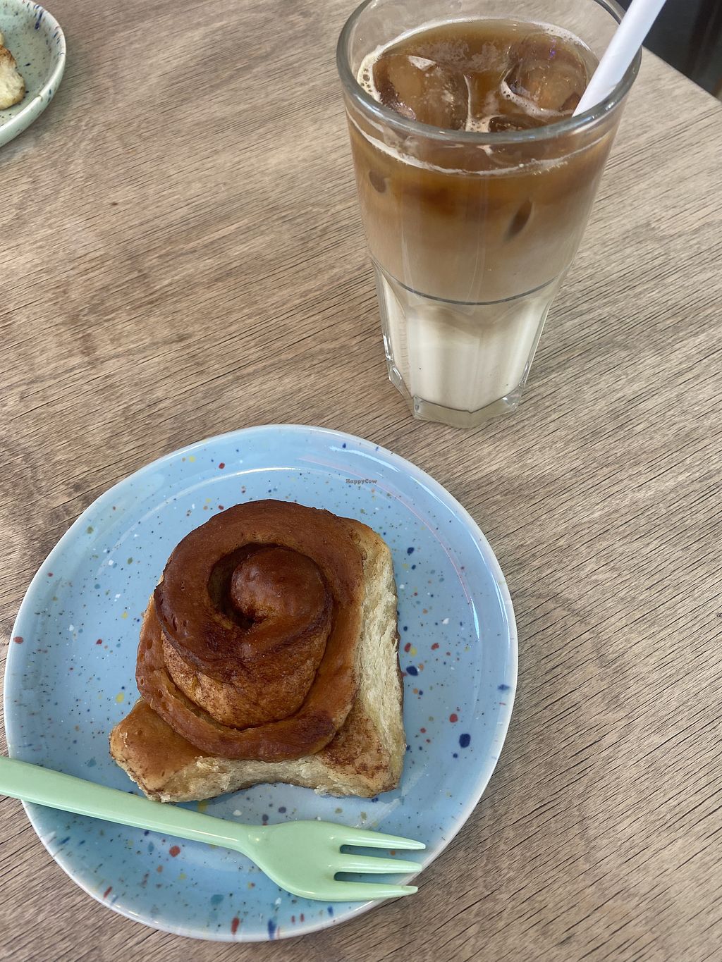 Ein sehr schönes farbenfroh eingerichtetes Café mit leckeren Köstlichkeiten. Ich hatte eine vegane Zimtschnecke probiert😄