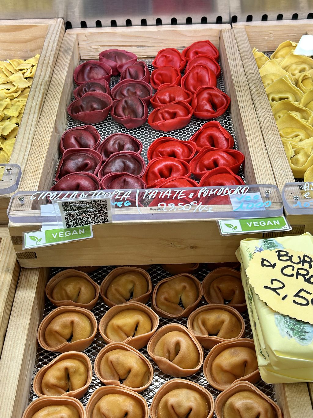 È possibile sia mangiare in loco che portare via i ravioli per cucinarli in un secondo momento. I proprietari sono gentilissimi. Mi è stato consigliato di verificare prima con una telefonata se sono disponibili i ravioli vegan.