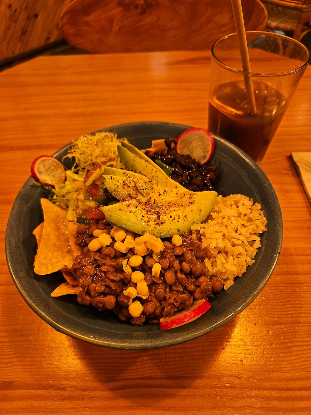 Had a lovely burrito bowl. Slightly dry but then with the hot sauce perfect. Friend had amazing looking tofish tacos and other friend Birria tacos.