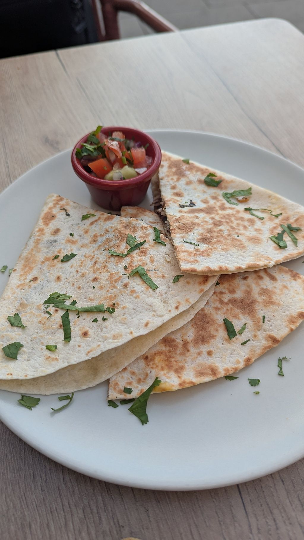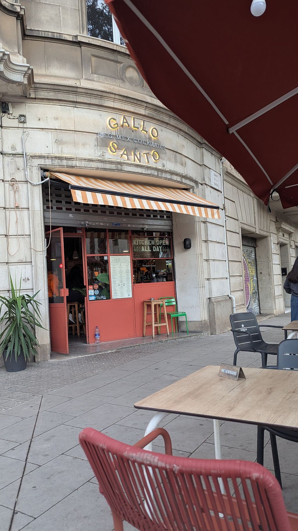 Conocíamos el Gallo Santo de su otro restaurante en el barrio de Gràcia. Como entrantes pedimos las quesadillas con unos frijoles negros simples pero muy buenos como acompañante. Tamal y patatas al horno con una salsa no muy picante. Luego tacos de tofu y algas, tacos de jack fruit al pibil y tacos de birria. Todos muy buenos, selección de cervezas Mexa y locales.