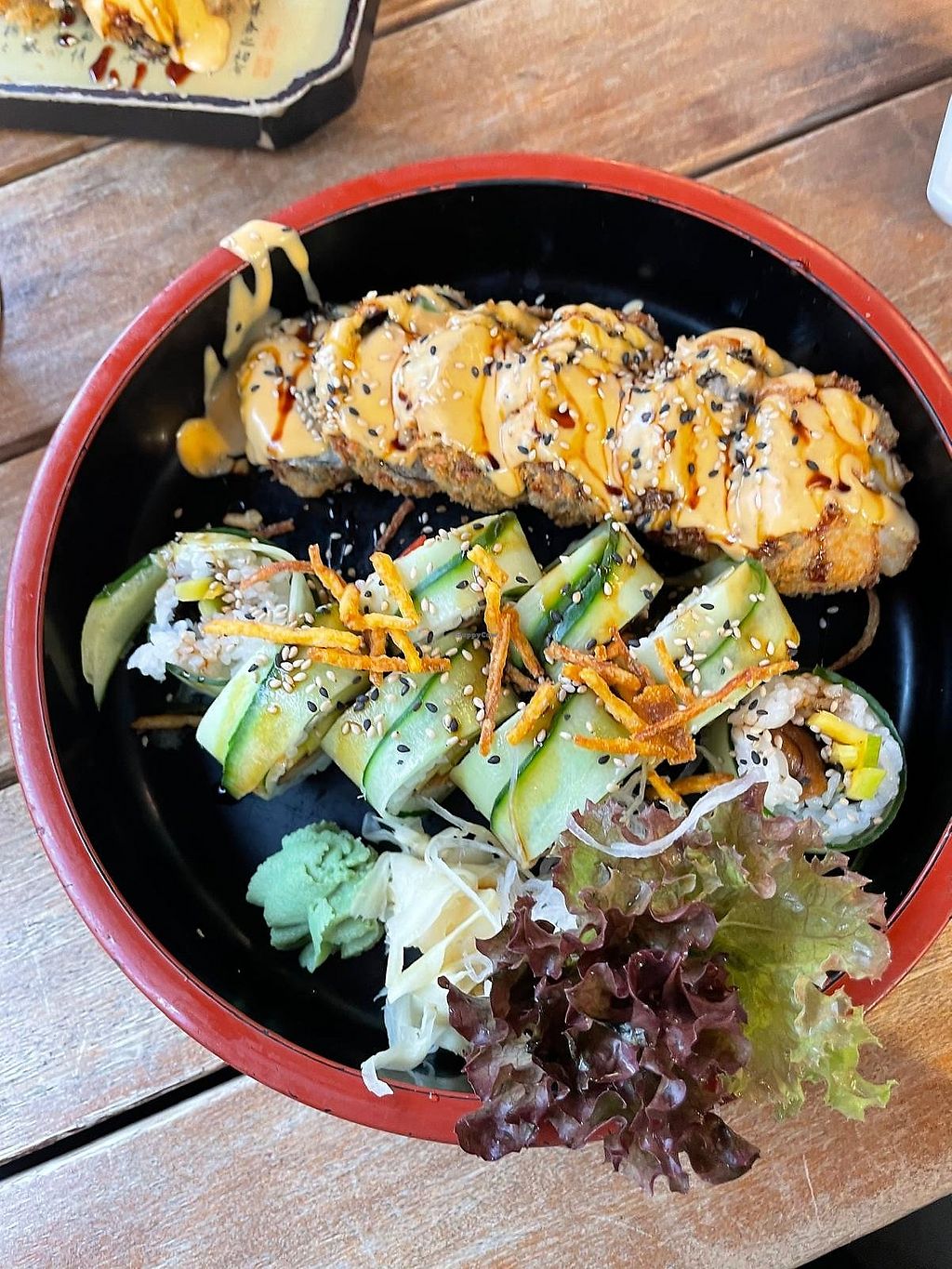 I went there to eat sushi, and I expected more vegan varieties tbh. When it comes to food like noodle and soup, they give you the option to replace the meat with tofu as well as veggies. But sushi portions and the ingredients could be richer. But it was tasty anyway! I'd recommend it.