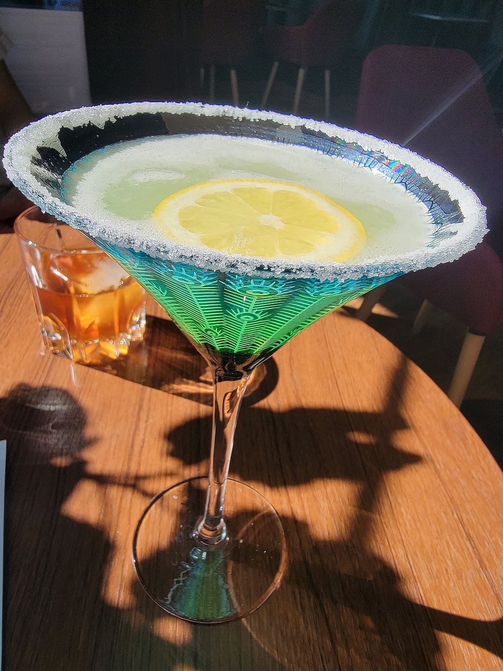 This cocktail bar has a small menu, so it's impressive that they have several vegetarian options that can be made vegan if they're not already naturally vegan, especially in a small rural town. The dessert, a coconut pudding, was delicious. We had the roasted vegetable main, which is served over rice patties that can be made with flax instead of egg. The portion on that dish was decently sized. The building is really nice, and the cocktails are beautiful.