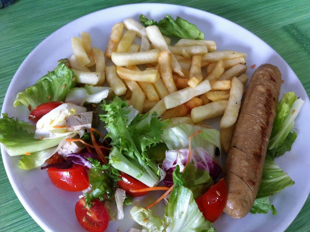 Sausage plate with salad and french fries