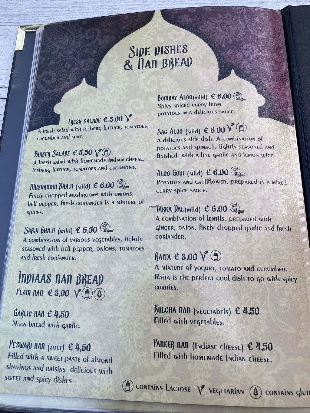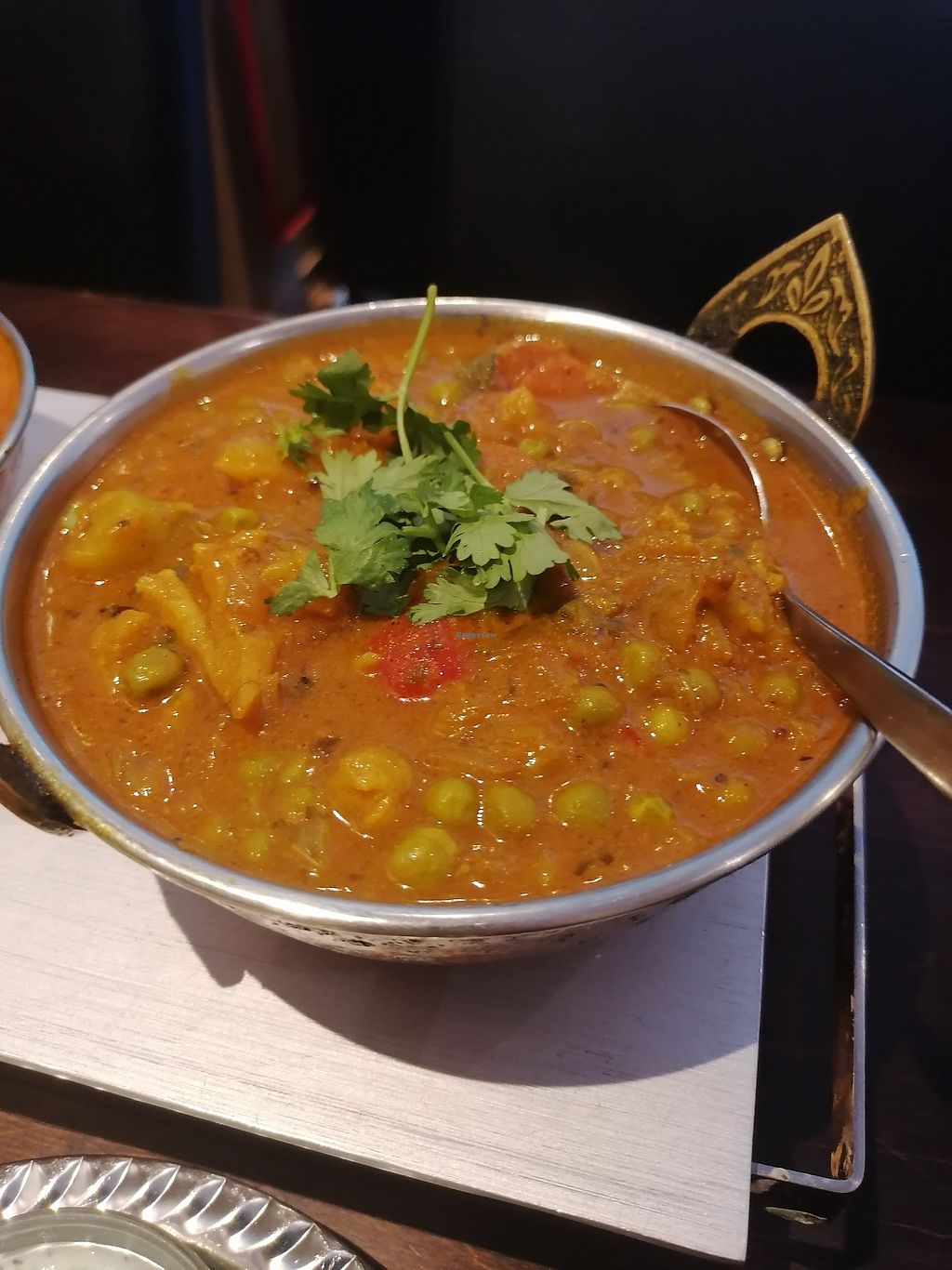 De veganistische items zijn duidelijk aangegeven op het menu maar helaas niet te eten. Ik had de Shabij Dhansak en het was zo zoet dat mijn lippen aan elkaar plakten tijdens het eten. Mijn partner had de Jal-ferizi en het was alleen maar hot. Niks geproefd aan Indiase kruiden. Echte teleurstelling...We hebben opgehaald anders had ik mijn eten teruggestuurd naar de keuken.