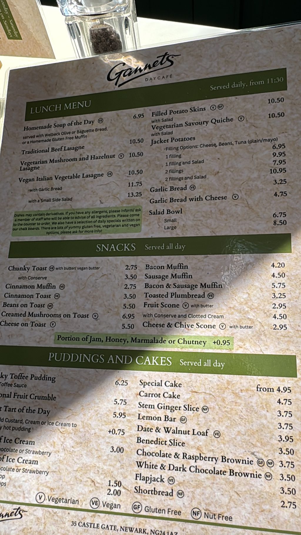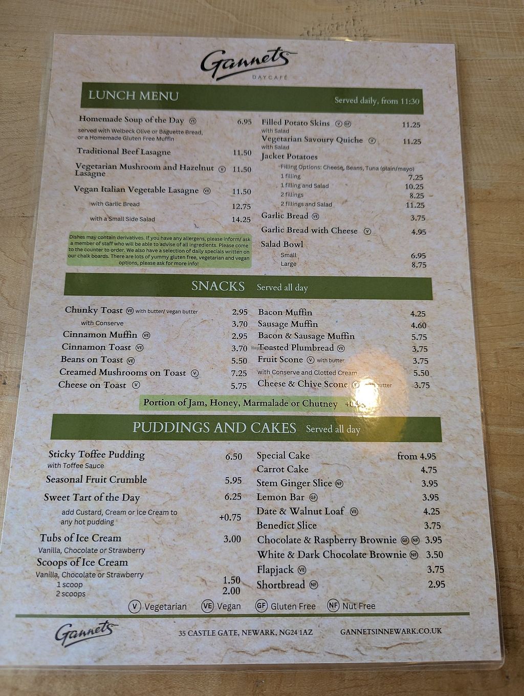 I was in the Newark area which is not an area that's easy to find vegan food. Whilst searching various restaurant websites I came across Gannets and the mention that they can cater for vegans. I rang and was told there were some options available however these are not listed on the menu as vegan. On arrival the lady spoke with the chef who was able to inform which options were vegan. I opted for the Provençal Bean and Vegetable Casserole which was fresh and tasty. Bread was provided as a side and this was served with dairy free spread. Plenty of drink options and soya milk also available. Food and drink a little on the pricey side but is fresh, local and organic. If you are in the area and stuck I'd give them a call. The menu changes frequently with daily specials so if you want to know what's available I'd suggest calling ahead.