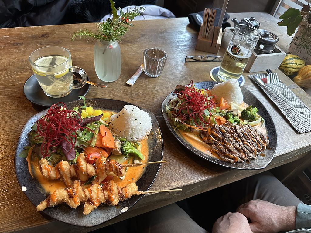 Wir hatten nicht so viel Hunger, haben also nur ein paar Appetizer probiert, aber die WanTan-Suppe, der Papayasalat und die Hühnchenspieße waren so so so gut. Die Getränke auch sehr erfrischend und nicht zu süß (Kumquats Limonade). Die Teller an den Nachbartischen sahen auch sehr sehr gut aus, wir kommen hoffentlich wieder! ♥️