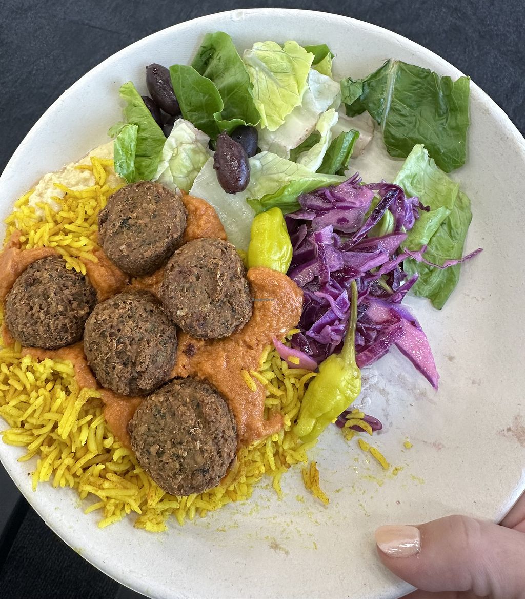 Read moreThe bowl was okay, the falafel was decent, the veggies good, I liked the dressing, the rice was dry and not very good.