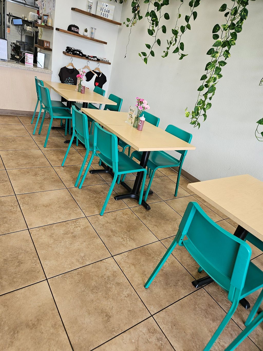 My favorites here are the Cali Burrito, Caesars Envy Wrap, and Peanut Butter Cup Smoothie. I'm also a fan of the Mixed Green Salad for my side. The menu has a variety of plant-based chick'n items that are popular. I like the health consciousness of this restaurant. It also happens to be near Sprouts Farmers Market, which makes a healthy combination.