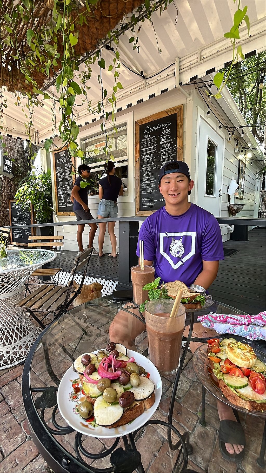 Serve meat, vegan options available. Coffee shop & juice bar. Non-vegan ingredients are collagen, bee pollen, honey, yogurt. meat, and protein powder. Vegan items are not clearly labeled so please inquire. Serves smoothies, smoothie bowls, hearty bowls, wraps, sandwiches, coffee, and baked goods. Open Mon-Sun 7:30am-3:00pm.