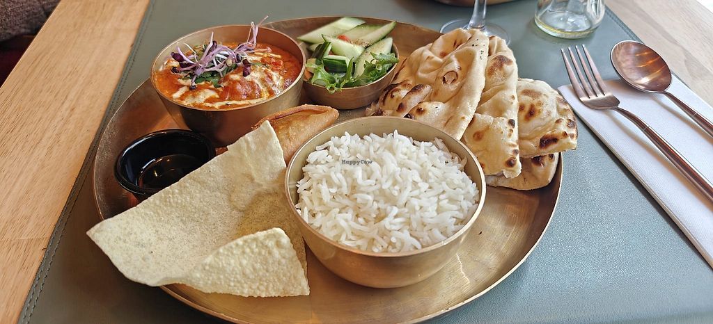 The vegan thali was tasty, filling and good value. Three different curries, rice, naan and a nice fresh salad, plus pudding.