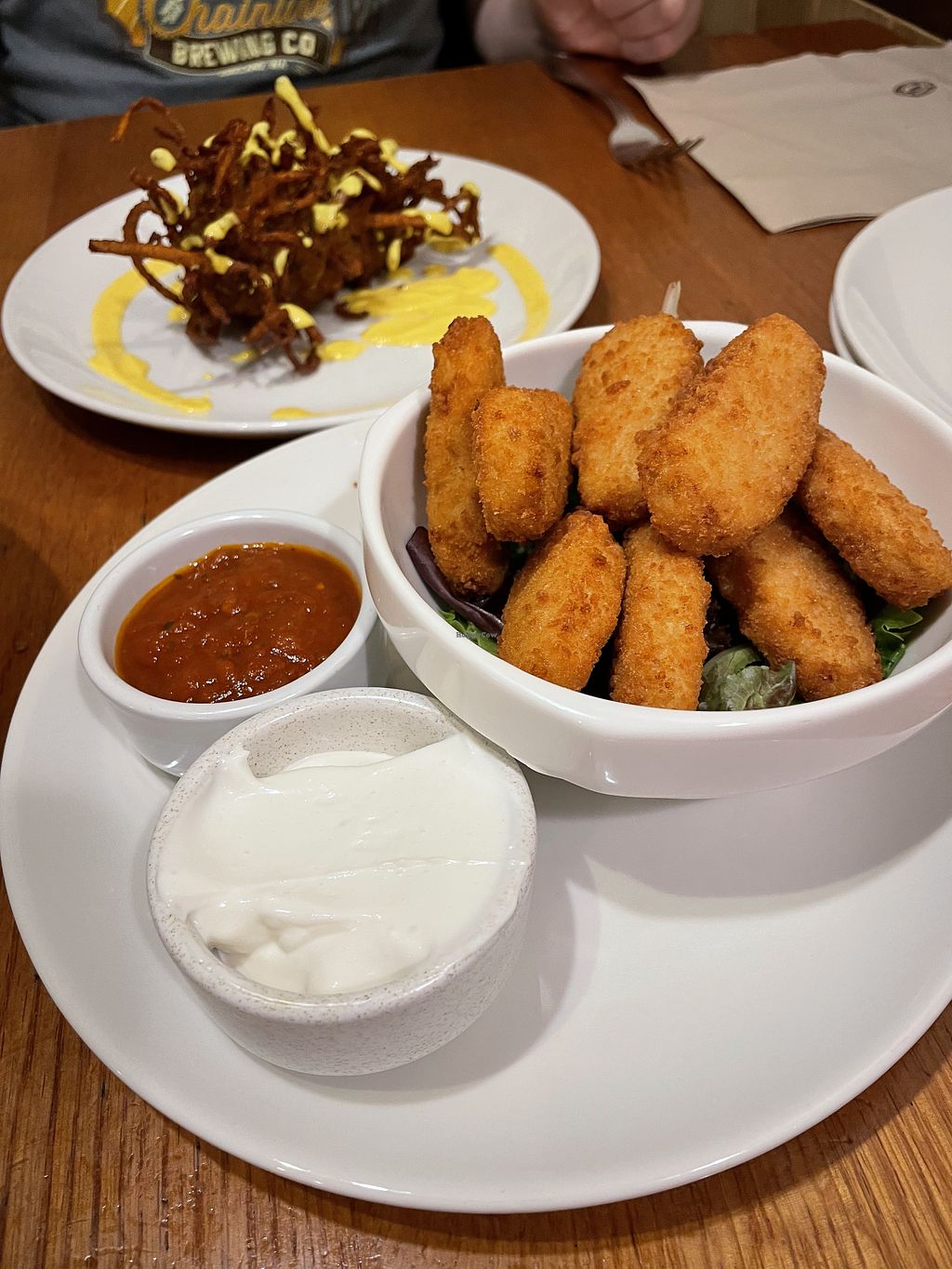 Read moreWe had the nuggets (with really good sour cream), onion bhaji (not sure what it was actually called) and the combination plate with burgers. Everything was good. Would love to return.