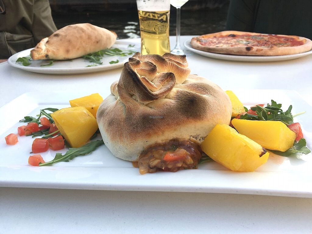 This Italian restaurant's menu has a few pages with vegan food only. For the first time of my life, I was lucky to get here a vegan Fagotto al forno, which is a type of Calzone, for 13,95⬠with vegan cheese for a extra charge of 2,50ā¬. I found it really tasty! I have had a vegan pistache souffle for 6,75⬠as dessert, which was also quite nice.
