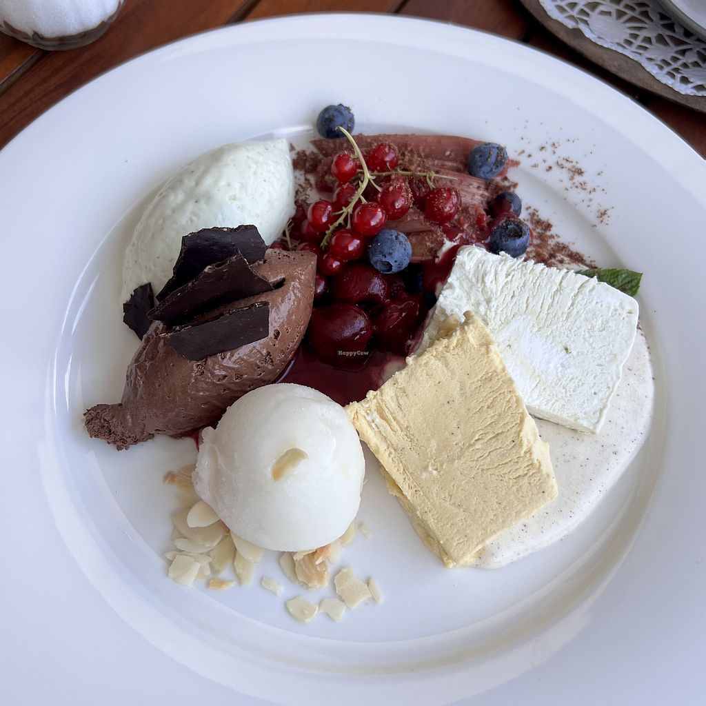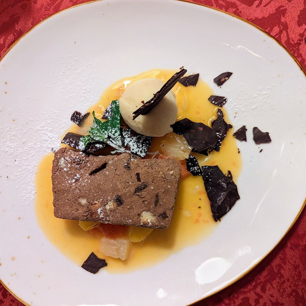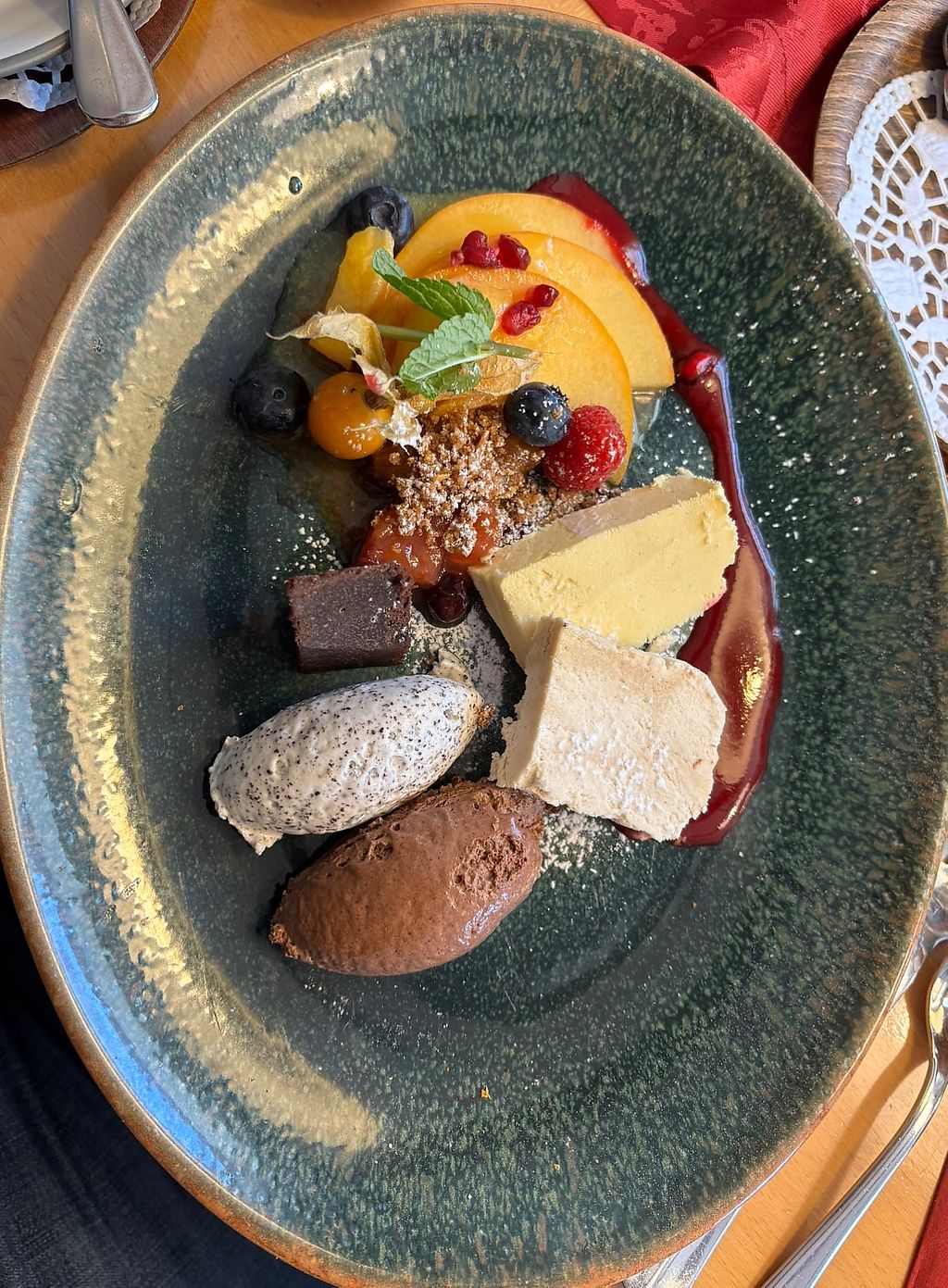 Dunkles Schokoladen-Tiramisu mit Zwetschgenröster und Cassissorbet