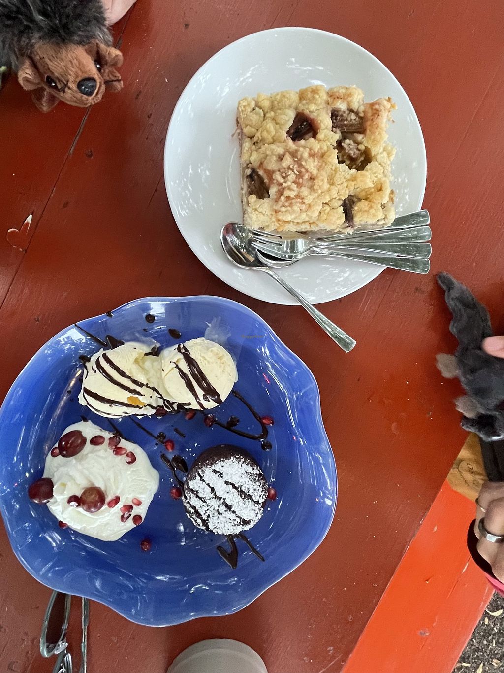 Rhubarb pie and mudcake w/ ice cream for dessert. All vegan!