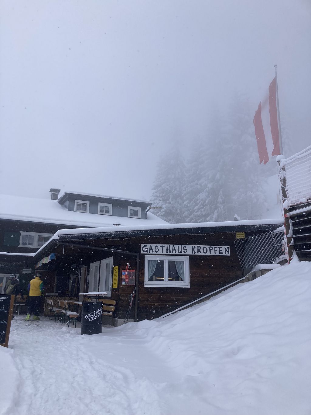 Serves meat, vegan options available. Mountain hut near the middle station of the Hochjoch Bahn. The veggie burger can be made vegan by omitting or swapping out the cocktail sauce. Also has fries and salads. Limited options nearby. Open Mon-Sun 10:30-16:30.