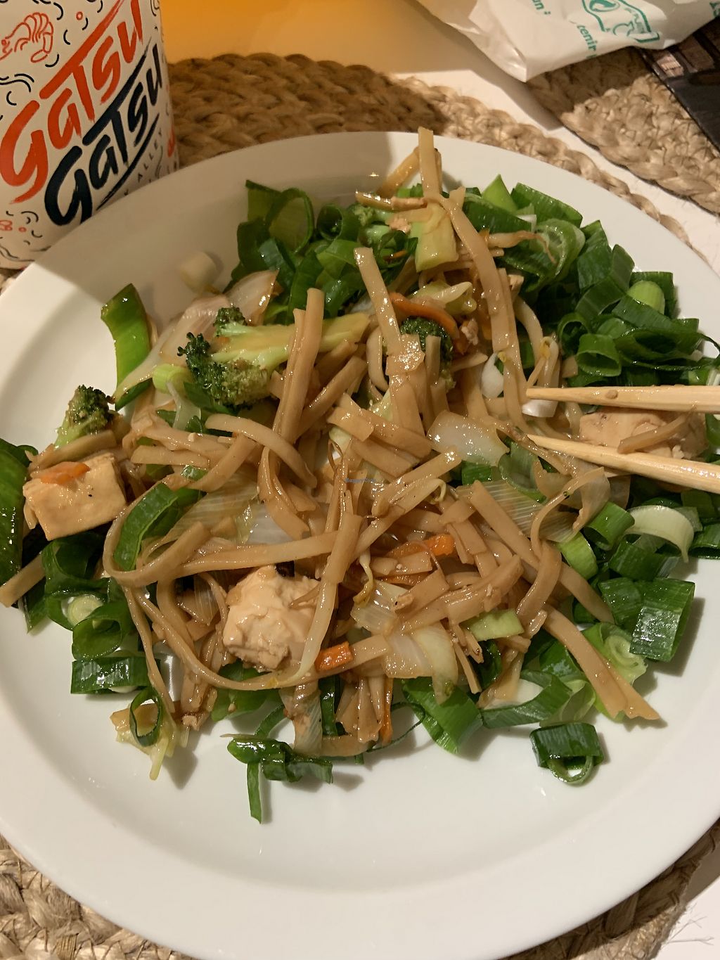 Brown rice noodles with tofu and vegetables
