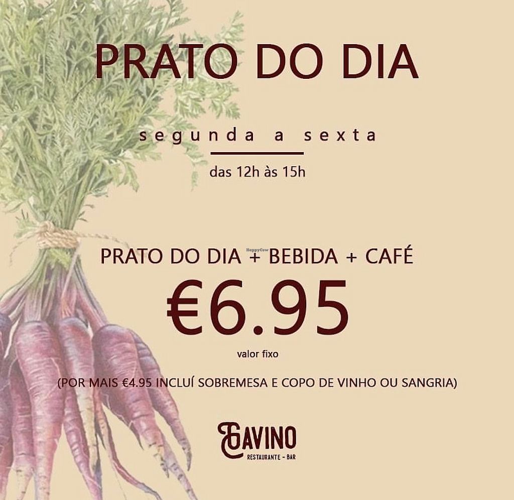 Prato do dia + bebida + café = 6,95€ Por mais 4,95€ inclui sobremes…
