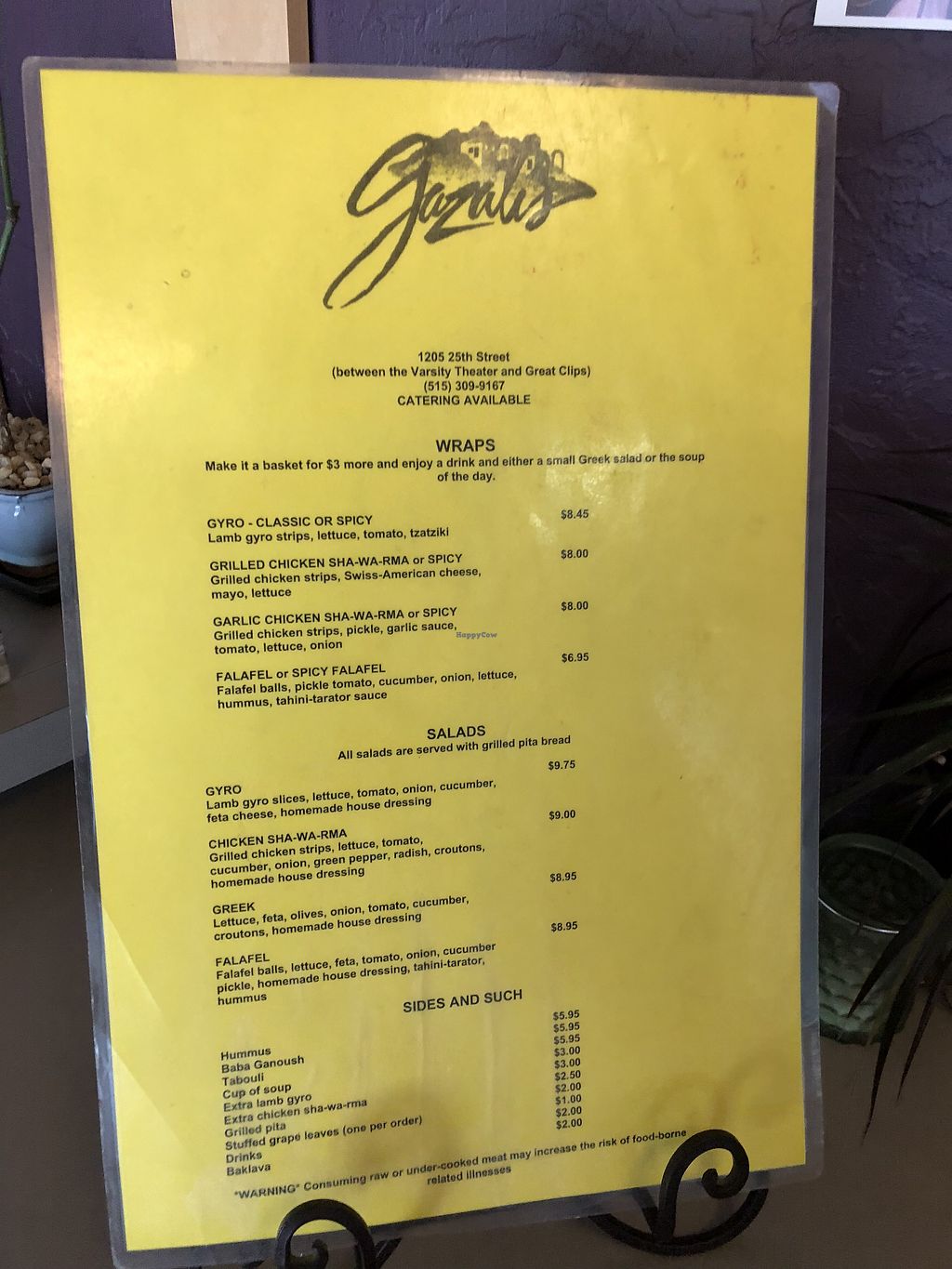 Very close distance to Drake University. Kind of hard to find parking though. There is ample seating inside and the staff are very kind. I ordered a falafel wrap but they ended up making a salad by accident. Fine with me! Probably a sign I should be eating healthier lol. The salad was delicious. They even included a wrap and dessert because of their mistake. Will be returning for sure.