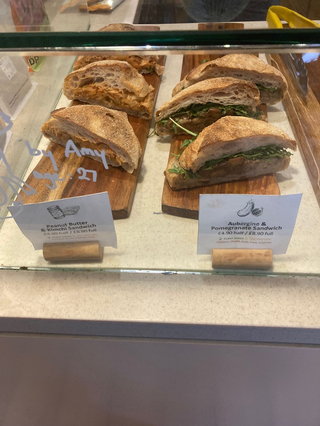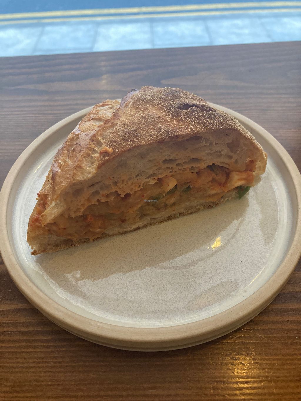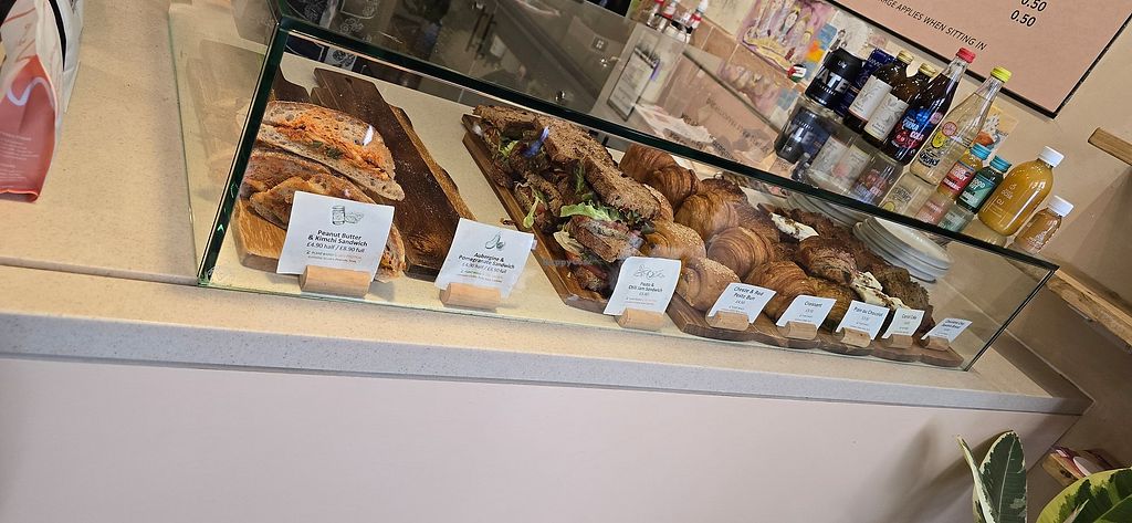 Really cool vegan cafe. Chai latte was very good. I got the aubergine sandwich and pain au chocolat and they were both really good. I had a bite of my friend’s kimchi and peanut butter sandwich and omg was incredible! Would defo recommend
