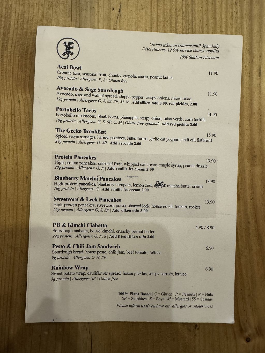 Going downstairs was a lovely surprise. What a chill and quaint space. The vibes are on point here. We ordered a vegan breakfast and it was incredible. The only downside of Gecko is the price.
