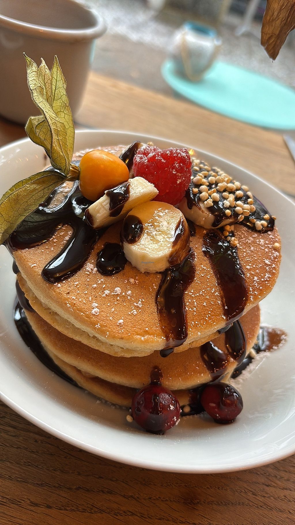 Ein schönes Café mit freundlichen Mitarbeitern. Als Alleinreisende wurde ich herzlich aufgenommen und habe ohne Reservierung sonntags einen Platz bekommen. Ich habe mich sehr auf die Pancakes gefreut, allerdings blieben sie etwas hinter meinen Erwartungen. Sie waren etwas trocken und bei wenigen Bananenscheiben und einer halben Erdbeere als einzigen Früchten fehlte mir leider die Frische. Gut geschmeckt hat es zwar, aber für diesen Preis würde ich mir mehr wünschen