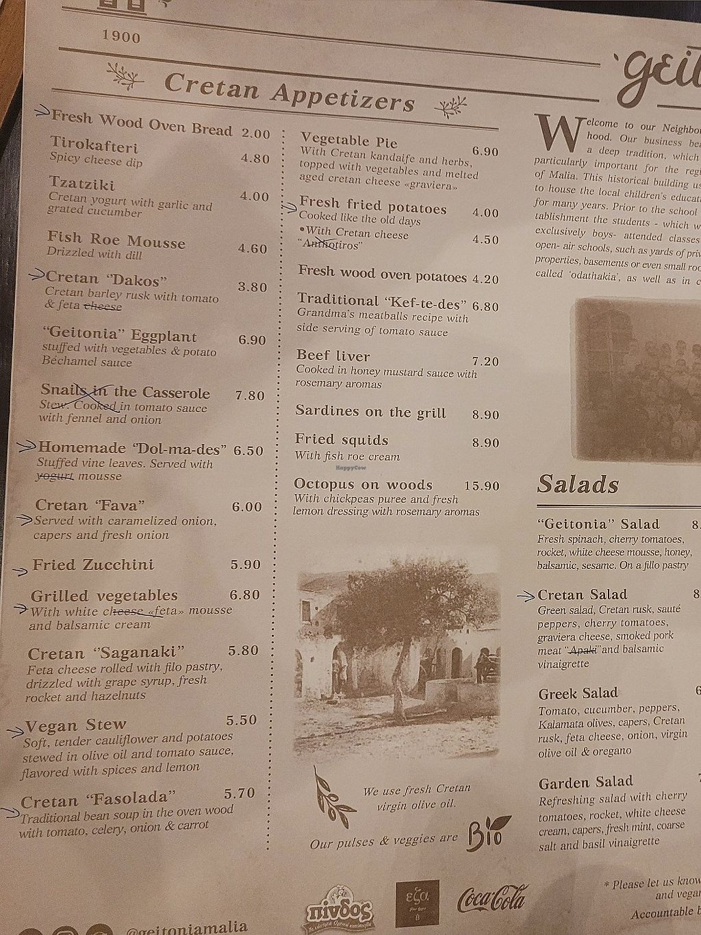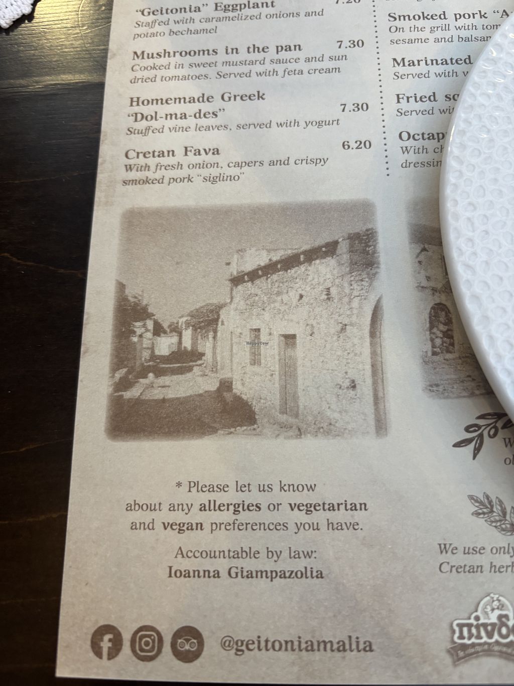 Serves meat, vegan options available. Greek restaurant offering several vegan and vegetarian dishes that can be made vegan by removing the dairy. Vegans can have the stuffed vine leaves, barley rusk with tomatoes, grilled vegetables, Greek salad, Cretan salad, Cretan fava puree, stuffed tomatoes & peppers, fried zucchini, fasolada (Cretan bean soup with tomatoes), Napolitana pasta and skioufikta (housemade pasta with vegetables & tomato soup). Open Mon-Sun 2:00pm-11:30pm. Hours are subject to season - check ahead.