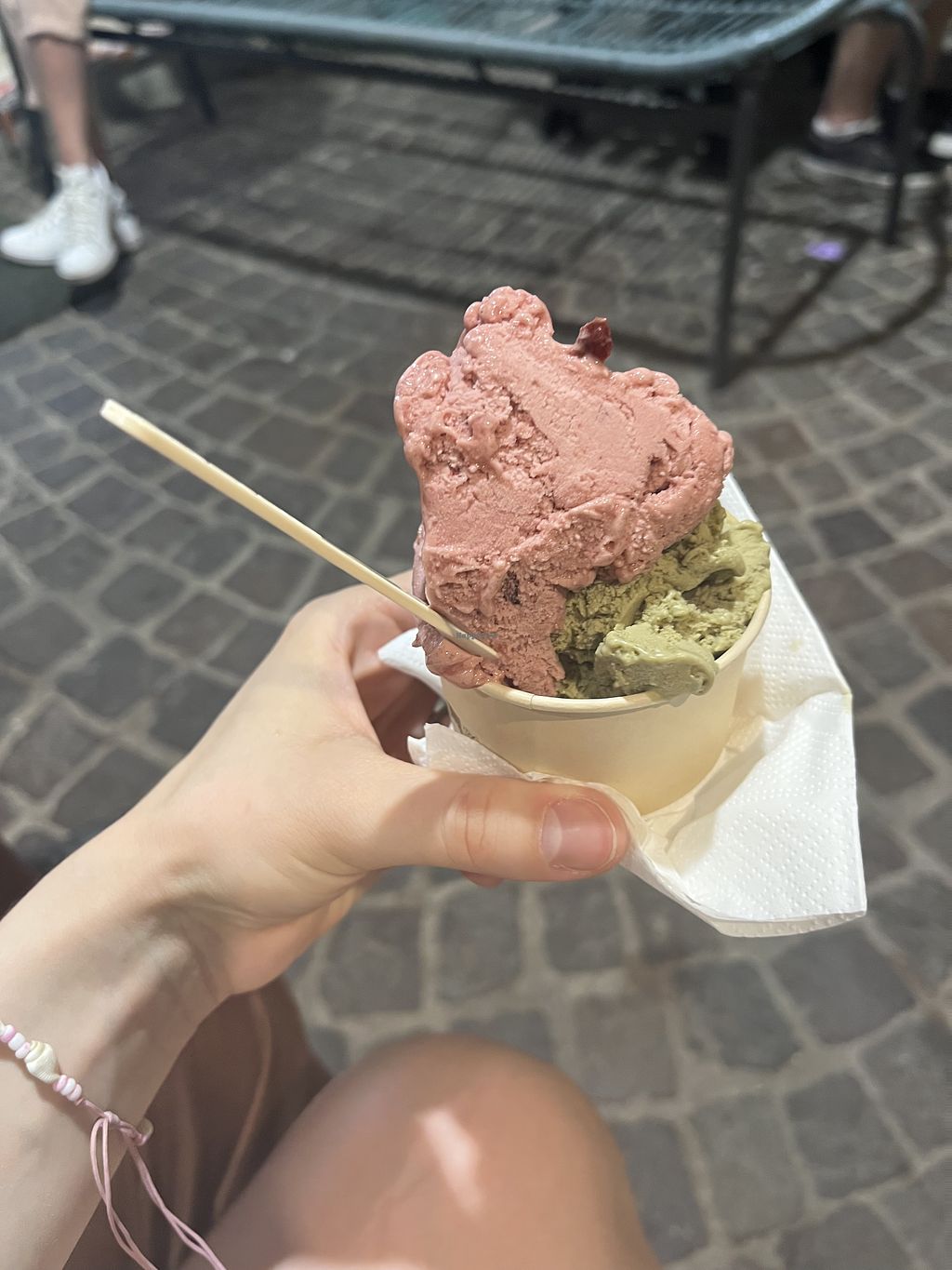 Prior our visit I checked google images where I discovered vegan ice-cream on a rice milk base is available here, unfortunately it was not at the time of our visit. However 12 fruity flavours were labeled vegan and marked as no sugars or colors were added. Creative flavours like yuzu with litchi or spirulina with curcuma and ginger or buckthorn, elderberry fruit.. Highly recommended! Helpful staff knowledgable about veganism. Compostable packaging. And the venue has their own big brown bin for compostable trash right outside.