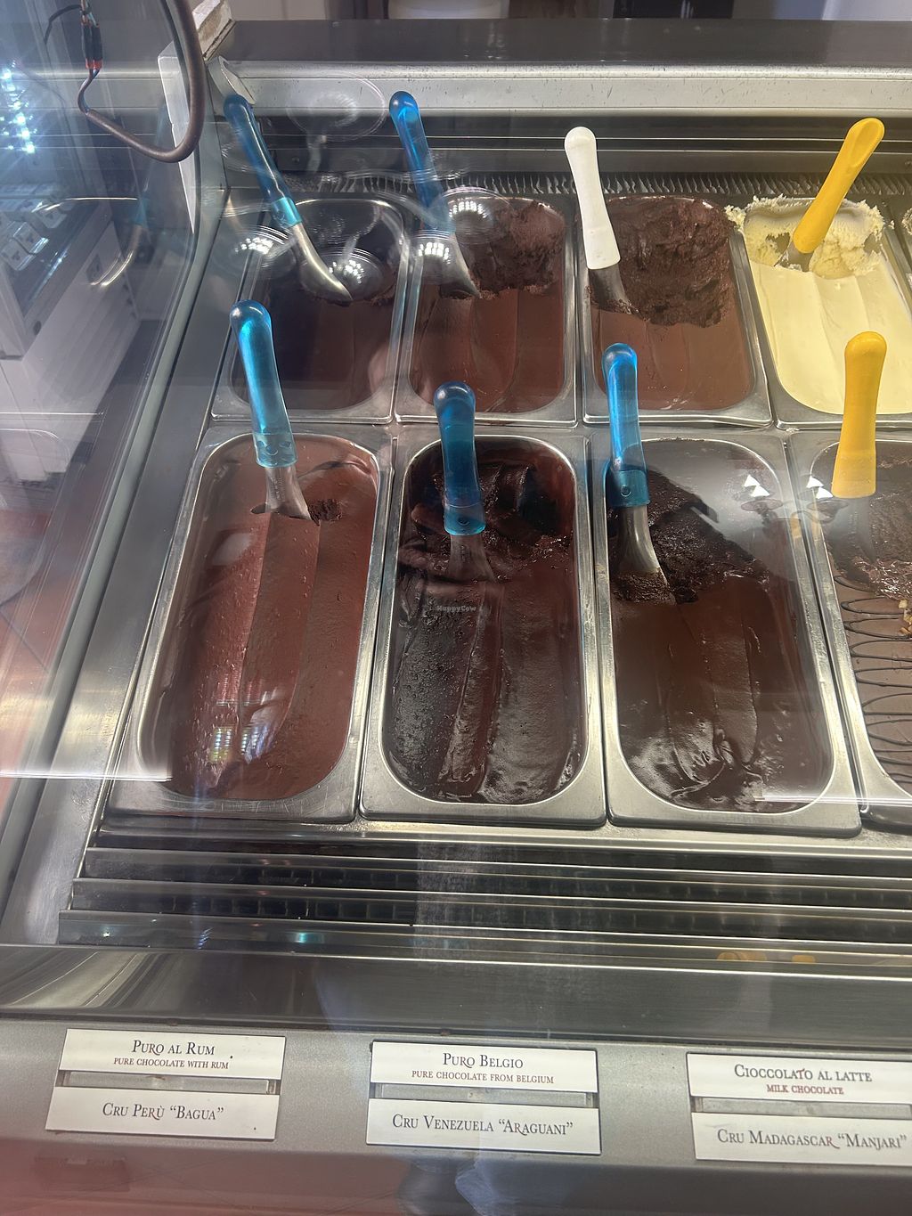 Many different chocolate vegan gelato flavors here
