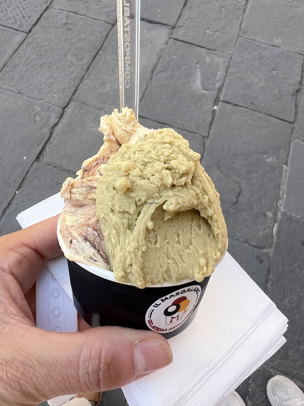 The place has a very clear communication on which flavours do not contain milk. So it is very easy to choose and the ice itself is super creamy and tasty. Also they habe flavours like pistacchio or hazelnut etc. which you do not find very often without milk in Italy. Also the staff is super friendly.