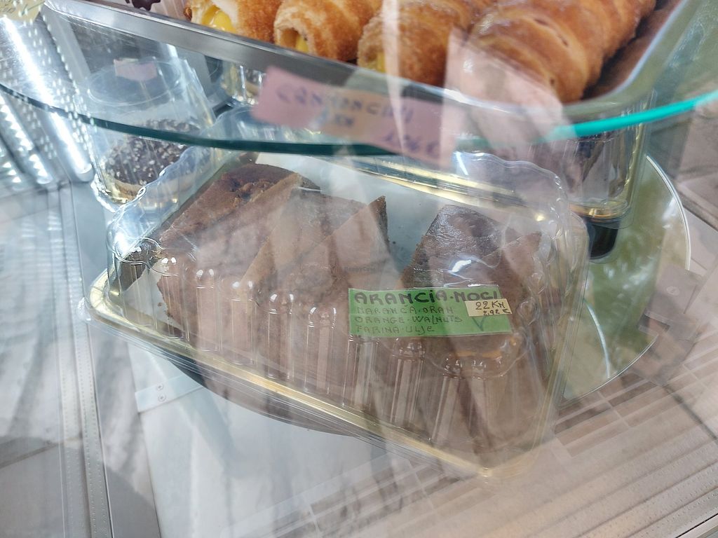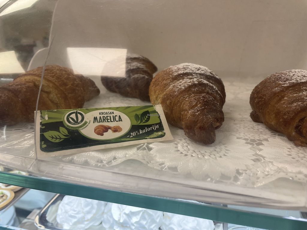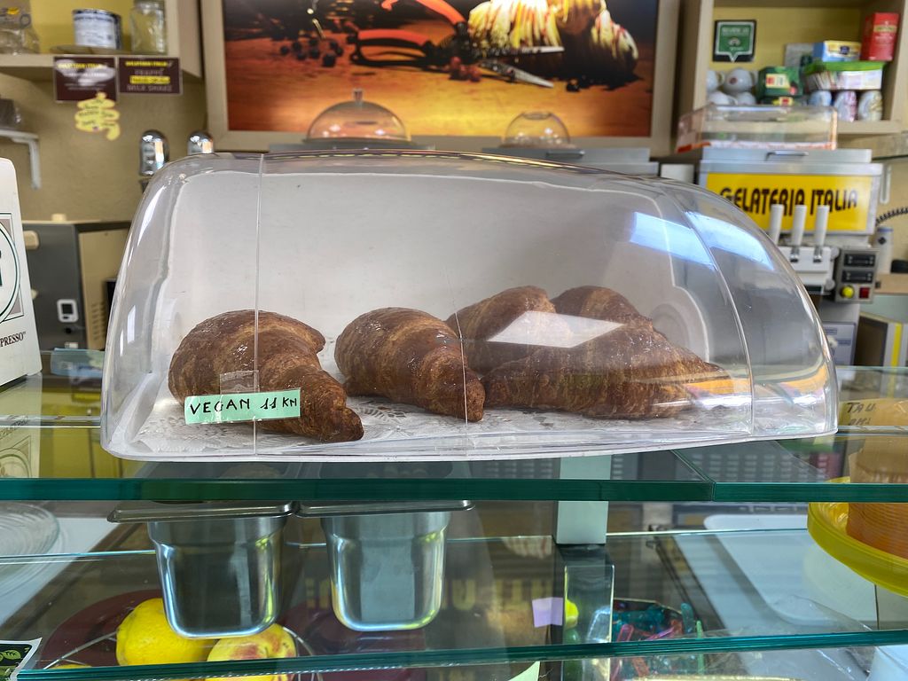 This is a great find in Rovinj where there are notbso many vegan options! It is not fully vegan however there are a few vegan ice cream flavours, cones, some cakes, croissants and they have soy milk for coffee.