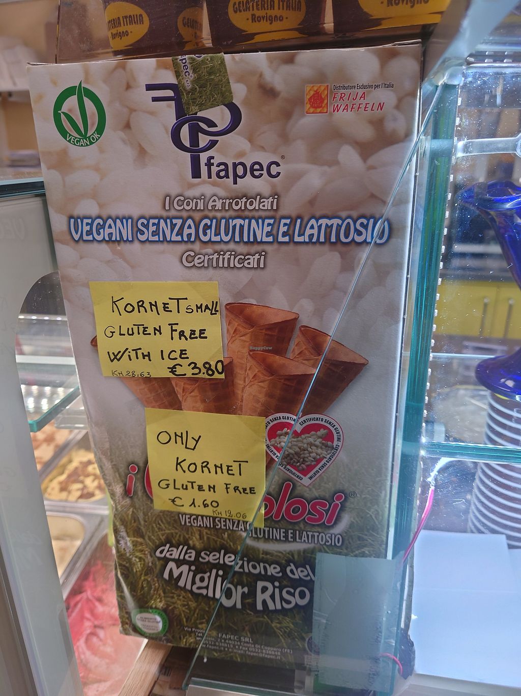 Italian gelateria with a small vegan ice cream selection (clearly labeled, also the cone is vegan) and some vegan pastries.