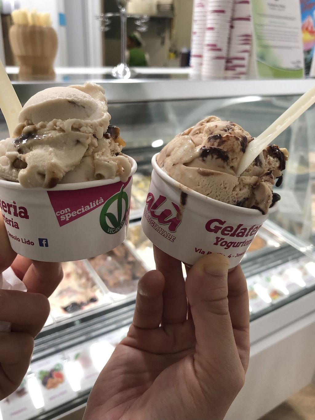 La mia gelateria preferita di Jesolo! Ieri sera trovati 12 gusti veg! Un’intera vetrina dedicata. Abbiamo preso cremino e fichi e noci, davvero buoni e gustosi entrambi. Super raccomandata!!