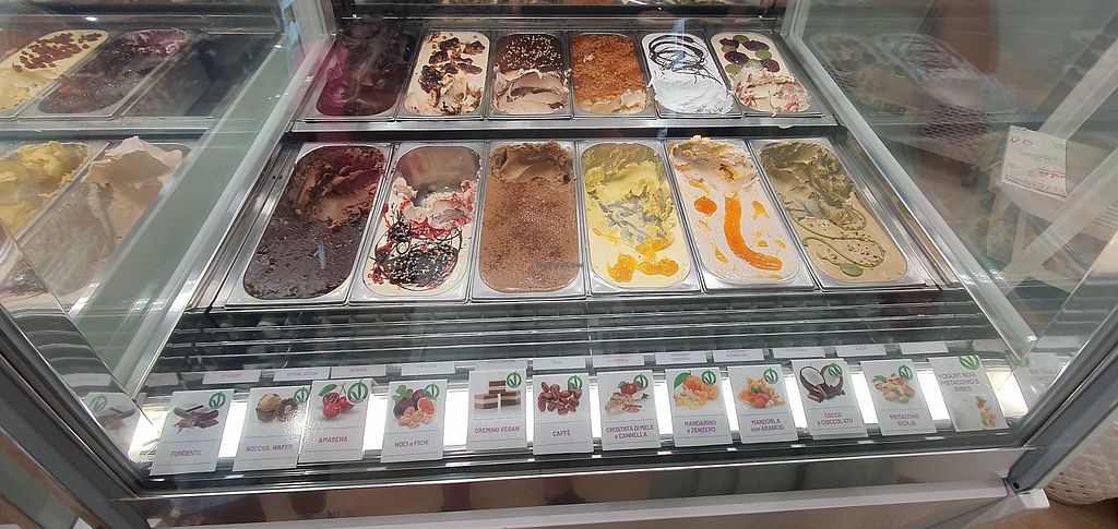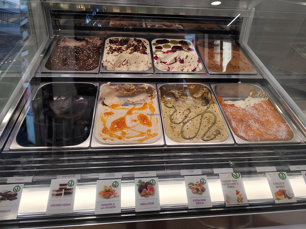Read moreHa una vetrina dedicata a tutti i gusti con base vegetale (circa 12gusti). E non i soliti sorbetti. Proprio no.