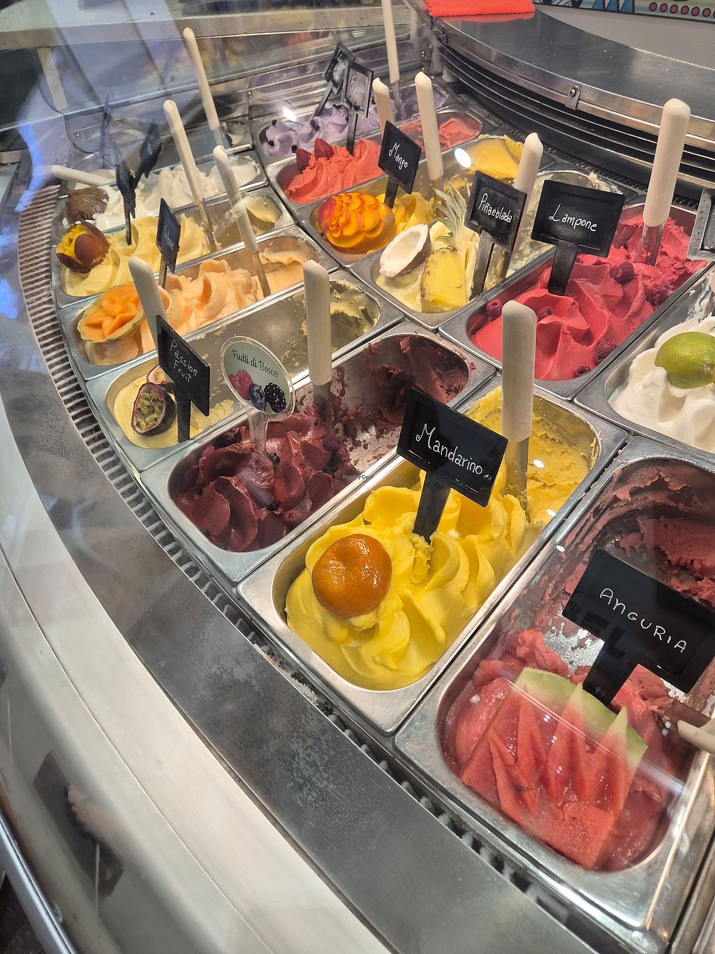 Vegan options include all fruit variants and 2 other (spot/nuta and chocolate). Staff was also very helpfull and spoke english.
