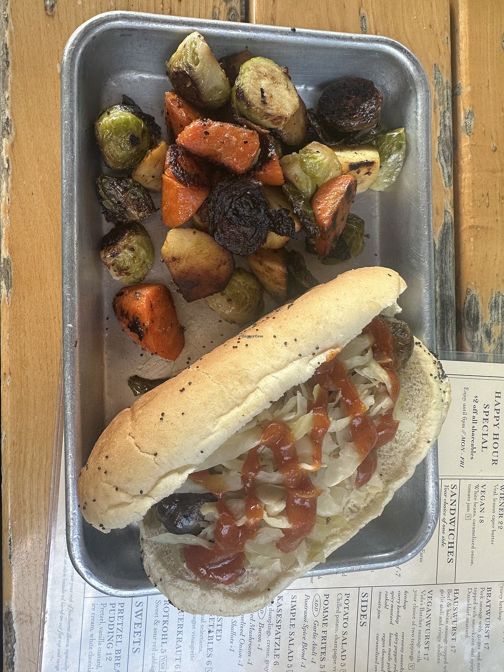 I went for brunch while I was visiting and tried the Vegan Frühstück Sandwich. They use Seitans Realm (local) Seitan for the sandwich, the potatoes were delicious. Easily labeled vegan options, will go again next time I’m in town for the vegan Currywurst!