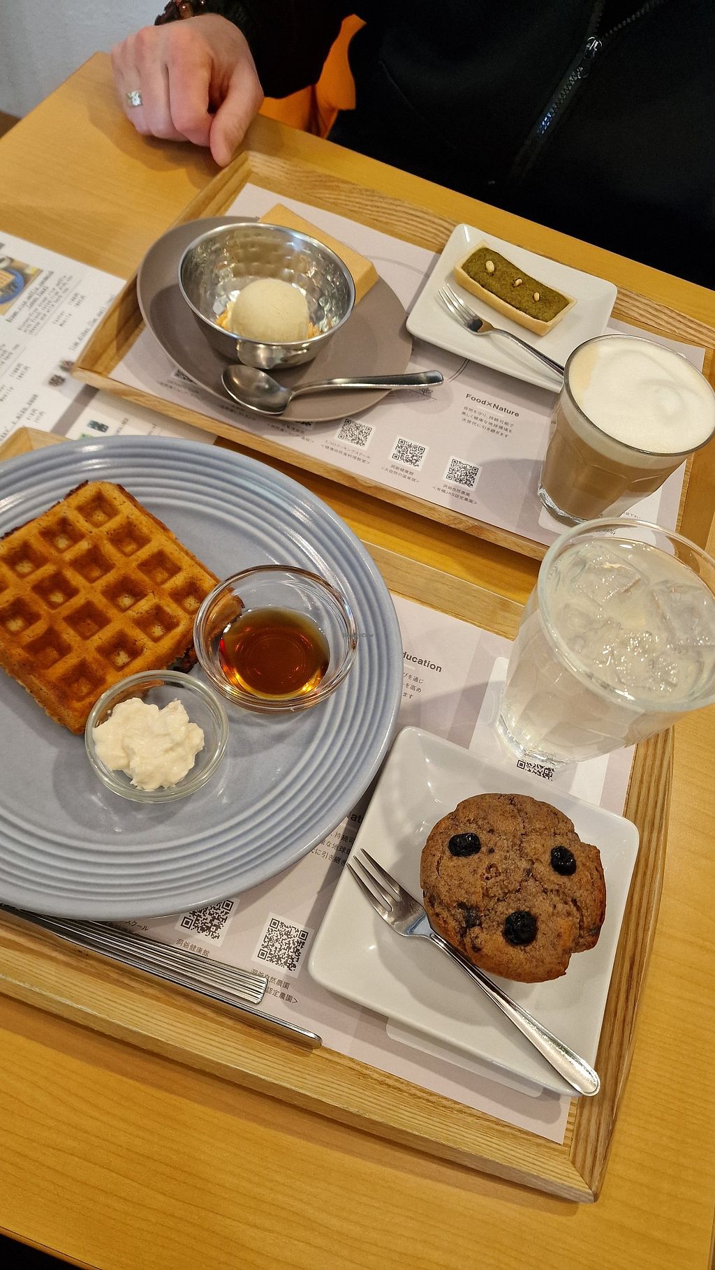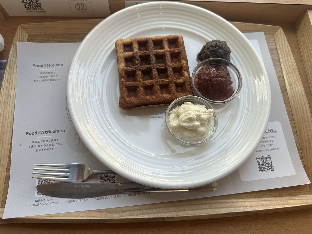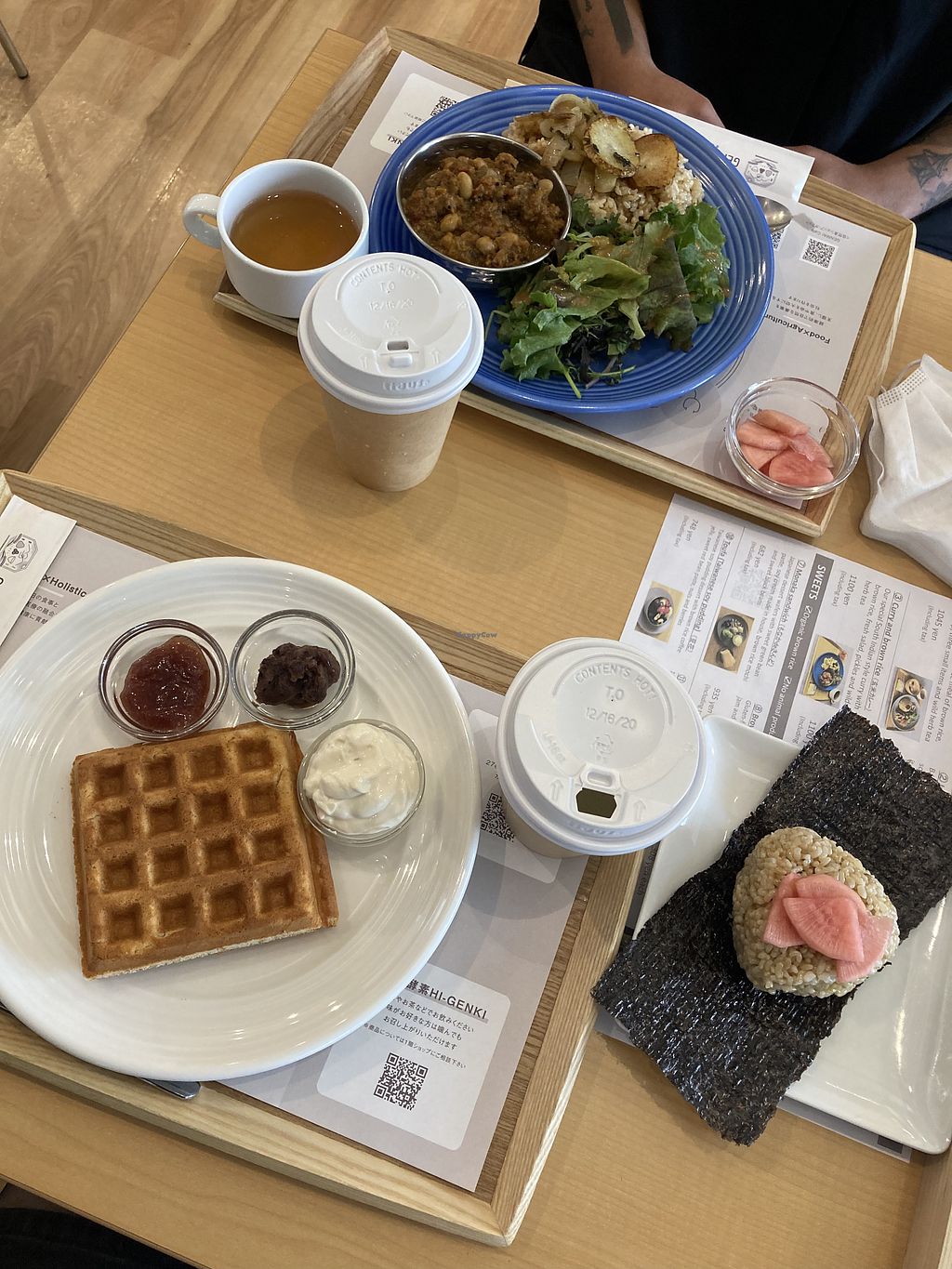 All vegan restaurant. I had the japanese lunch set with a waffle for dessert and my partner a waffle menu. The portions are small so I am glad I took a dessert.