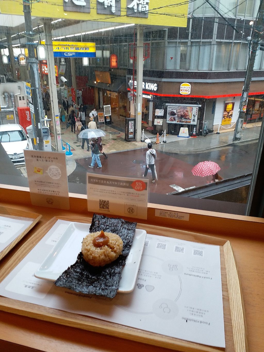 The food was very tasty and very healthy. I wish the portions were a bit bigger, and that the design was less like a canteen. From my seat I had a view of a bustling shopping district in Osaka