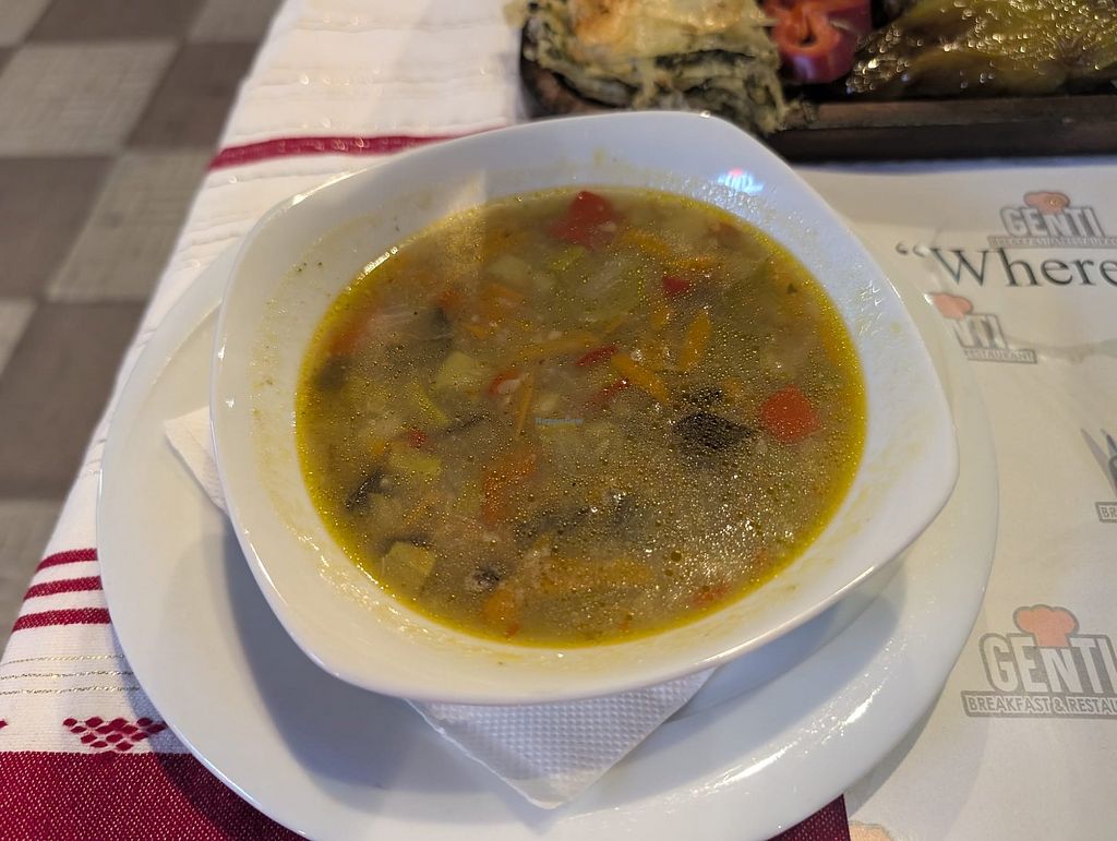 We enjoyed dinner at Genti. We chose the vegan combo. It was really yummy, the star of the show being the soup! Other items on the plate were spinach pie, which was also tasty, a lovely fresh green salad and a stuffed pepper and a stuffed eggplant. We ended up ordering an extra helping of the soup! Great dinner and great value for money too. Thank you to our waiter Gabriel who was so kind, friendly and helpful, creating a really lovely atmosphere. The restaurant is also beautiful...very nicely decorated and lovely and clean 😊 Note that only fully vego or vegan restaurants can be awarded 5 stars...if I could I would give this one 🌟🌟🌟🌟🌟!