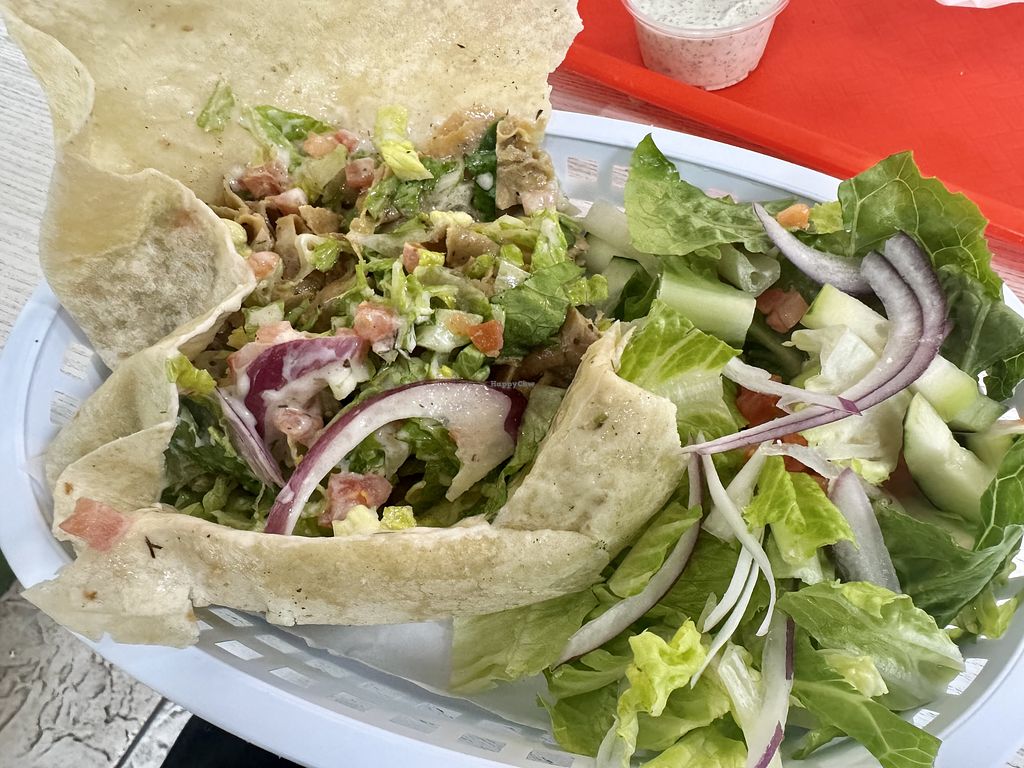 My boyfriend and I ordered a burrito and gyro fries. My fries were crispy, and I loved the tzatziki. We both really liked our food, and my boyfriend even asked me after we started eating to verify the whole place was vegan… lol. The person working was friendly, and the food came out pretty quickly.