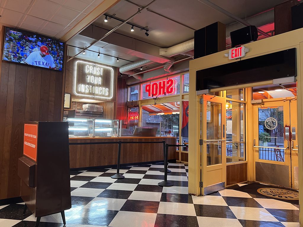 Serves meat, vegan options available. Pizza restaurant offering a vegan pizza option. Open Mon 12:00pm-12:00am, Tue-Fri 11:00am-12:00am, Sat-Sun 11:00am-1:00am.