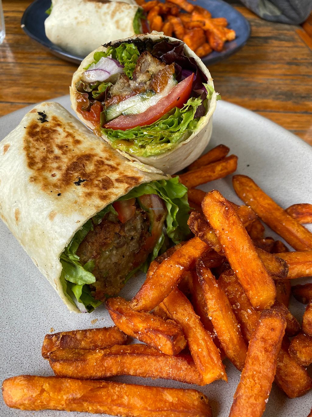 We booked last minute and with vegan requests so I was prepared to be disappointed. Boy was I wrong! Staff on phone knew exactly what to make vegan and even had our order ready when we arrived. Serves were HUGE (had the Veg-Out Wraps) and came with sweet potato fries. Literally best wrap I’ve ever had. Could easily have fed 2 people. Staff were so friendly and helpful. Setting amongst tropical gardens was stunning. Fire pit outside and lots of heaters in winter. Deck, pond, gardens and even a little waterfall. Campos coffee made on Bonsoy was perfection. I will not go anywhere else in Agnes Water for vegan food because it will pale in comparison to this place. SO GOOD.