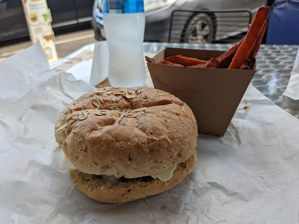 Lacto American Fast food Take-out Non-veg Serves meat, vegan options available. Burger restaurant chain but with two labeled vegan burgers on the menu: a vegan cheese burger and a crispy burger. Open Mon-Sun 10:30am-8:30pm. More